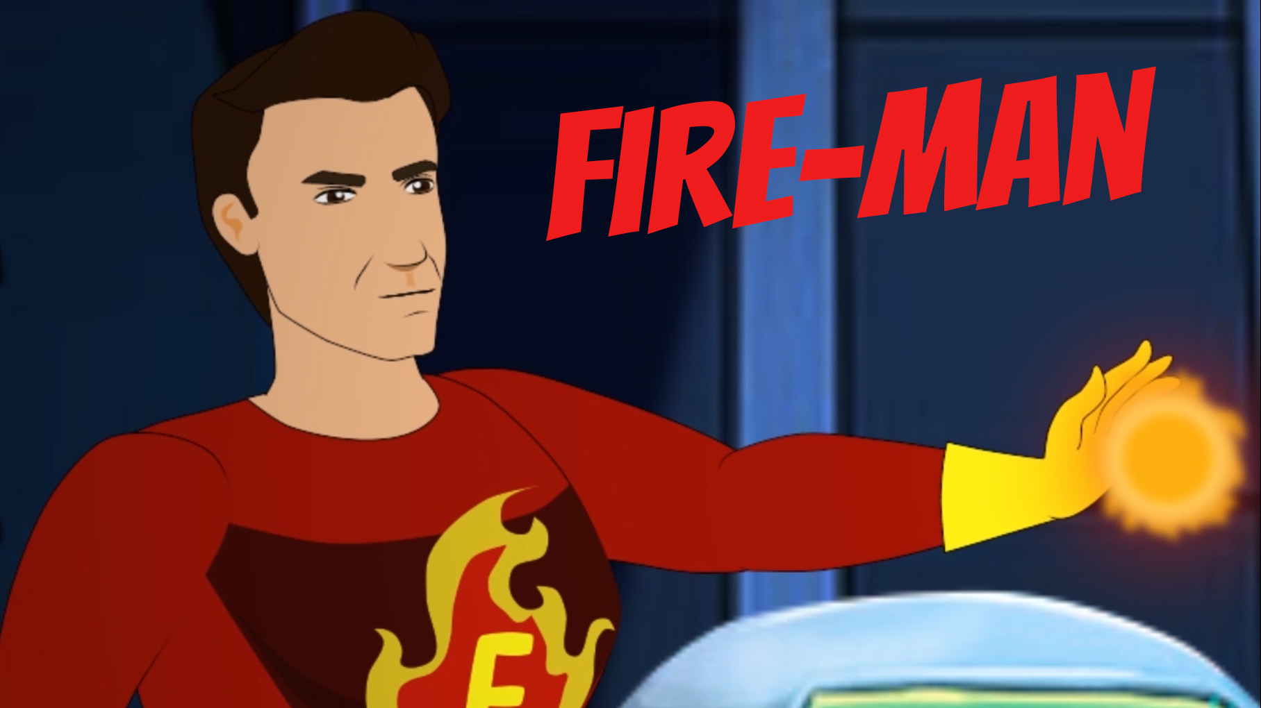 Superhero with the ability to shoot fire from his hands. Dim-witted but virtuous, Fire-Man will always make the just decision – as long as he understands the choice.